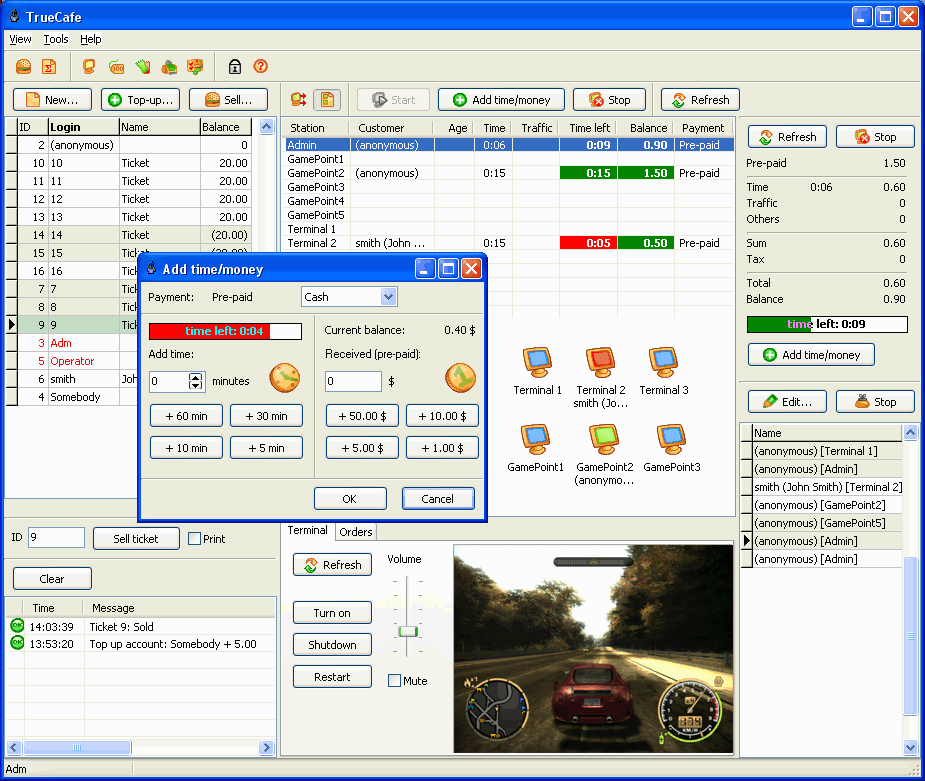 المحطات الطرفية أقفل محطات مقهى الأنترنت الخاص بك. إحميها من الدخول عبر ( كنترول + الت + ديليت ), إلخ. أظهر النقود/الوقت المتبقي لدورة العميل بعد تسجيل الدخول. أجعل عملائك يطلبون وجبات خفيفة,مشروبات,إلخ من مقاعدهم.
