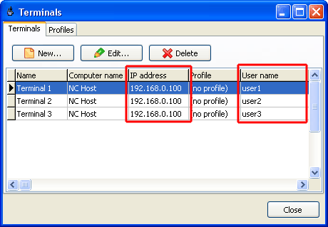 Manage terminals | |
