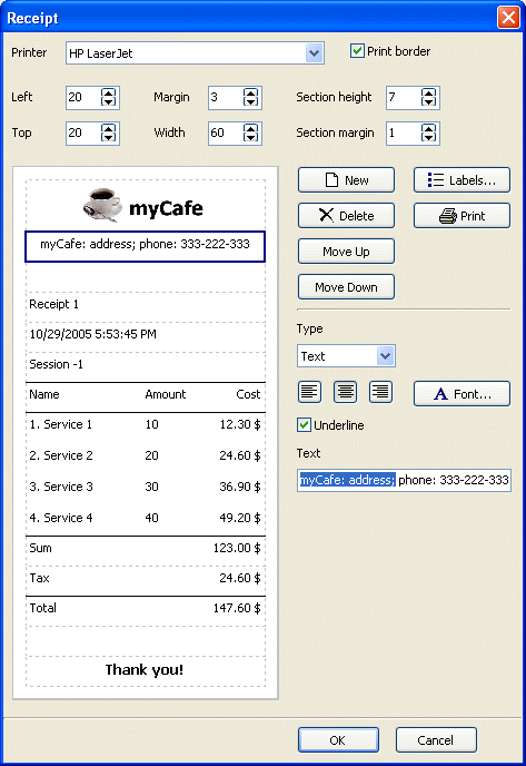 Sell products in your cyber cafe. Make a walk-in (anonymous) and member sales, select multiple items into a bill, add/remove items from a bill. Print a receipt on the receipt printer or any other printer. Make your unique receipt design. |