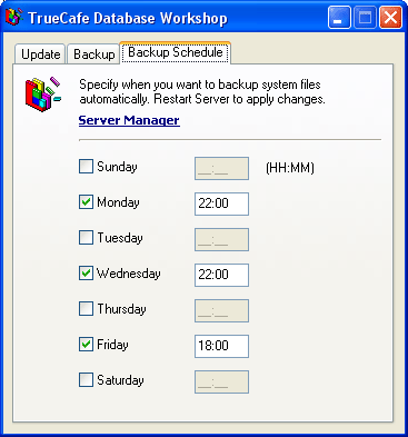 Backup and restore TrueCafe database and all system files. Configure a backup schedule to backup your data and settings automatically. Clean up the database. |